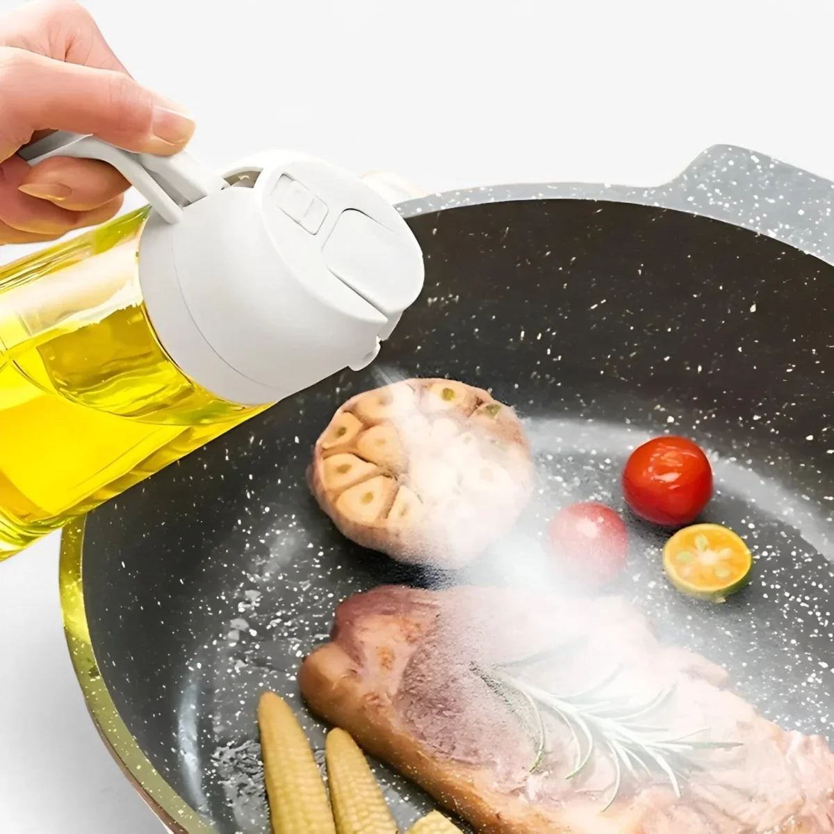 Zeg vaarwel tegen vette, doorweekte gerechten en verwelkom eenvoudige, nauwkeurige smaakcontrole met de Elora 2-in-1 olie spray & kan!