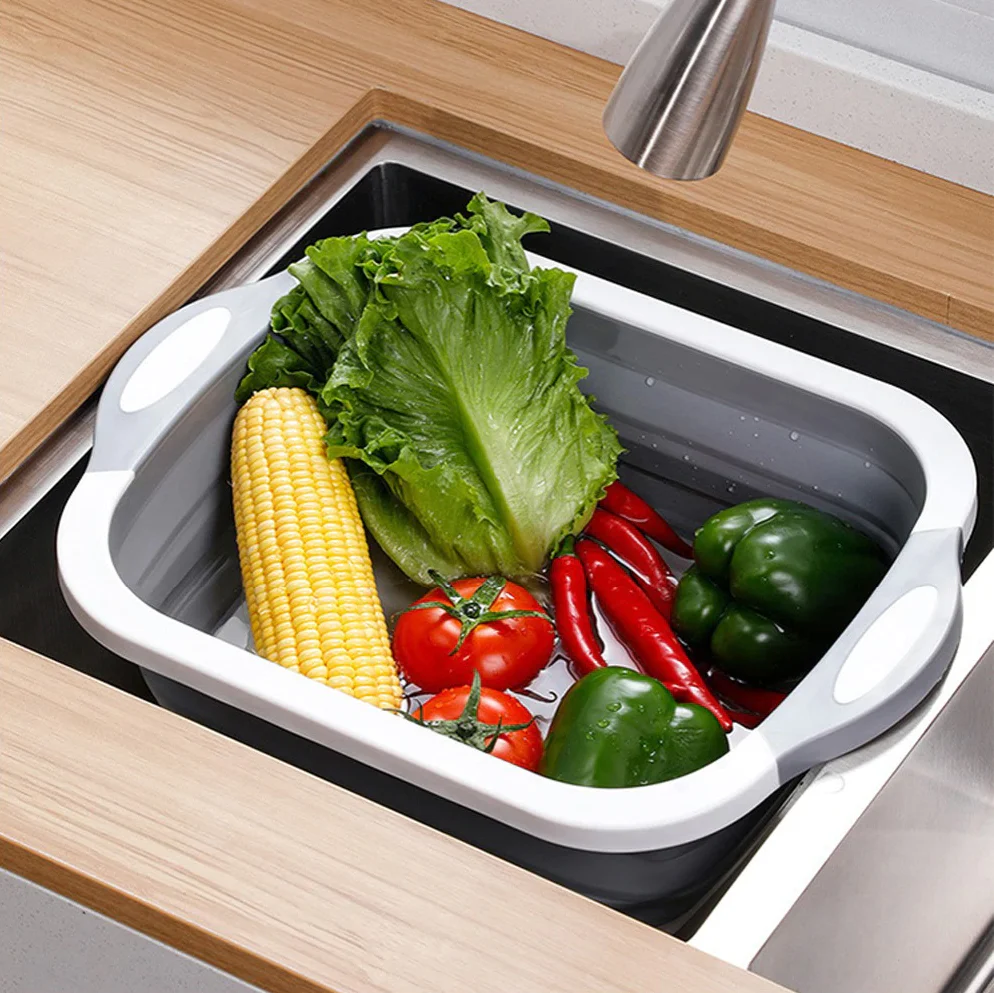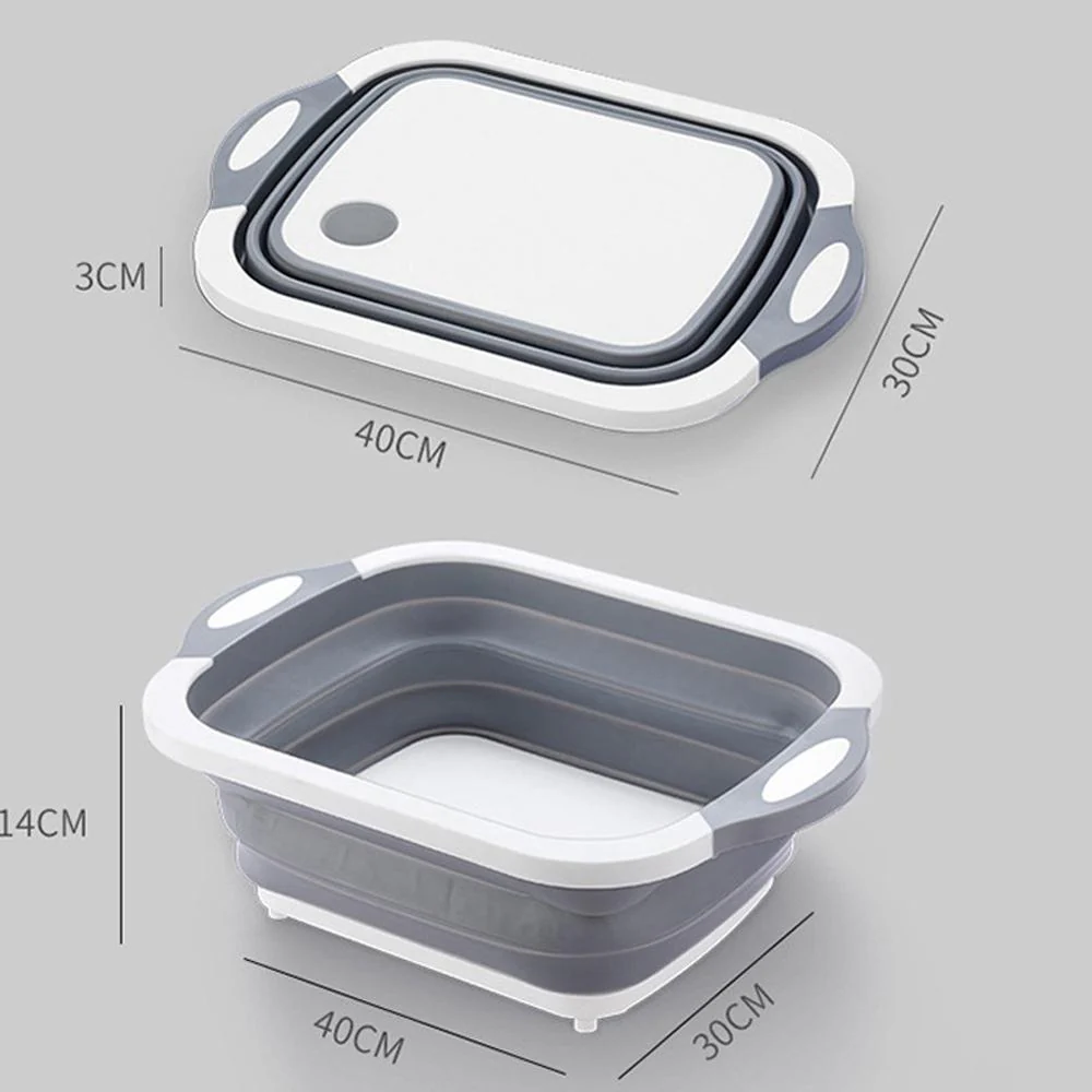 Vanwege de opvouwbare randen kan hij gebruikt worden om te snijden, wassen, en om groente/fruit in op te bergen. Daarnaast kan de 3-in-1 Snijplankmand worden gebruikt als vergiet aangezien hij een afvoerklep heeft. Gebruik dit elke dag, en houd uw aanrecht vrij voor andere keukengerei.