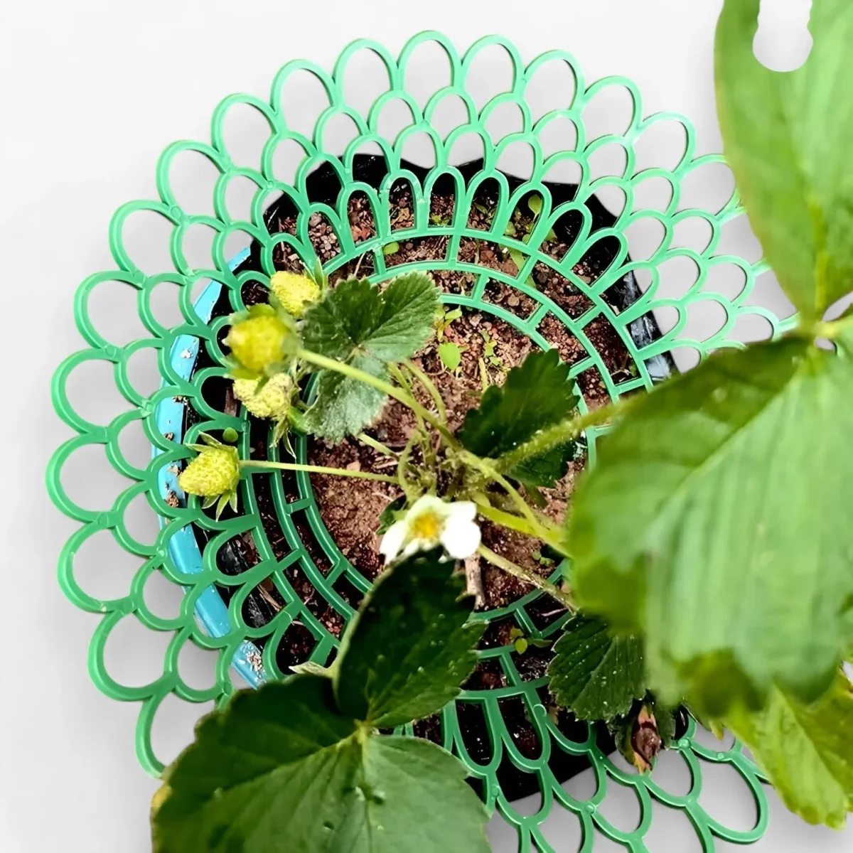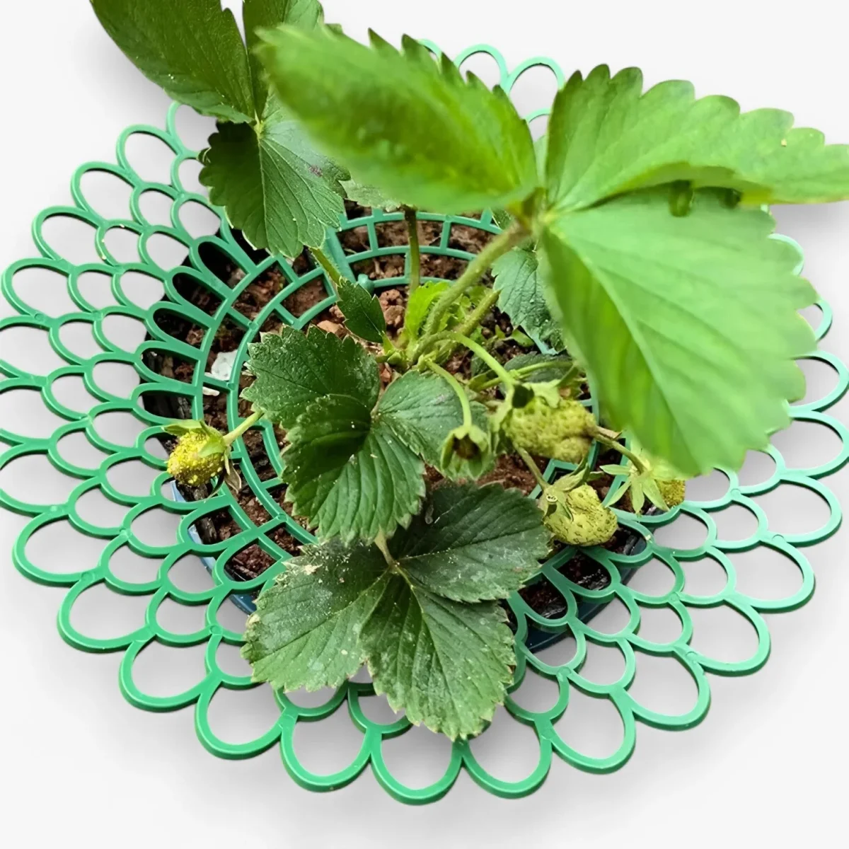 De drie stabiele poten van Stella houden aardbeien, groenten en planten stevig rechtop – niets valt om, niets zakt weg, zelfs niet bij wind.