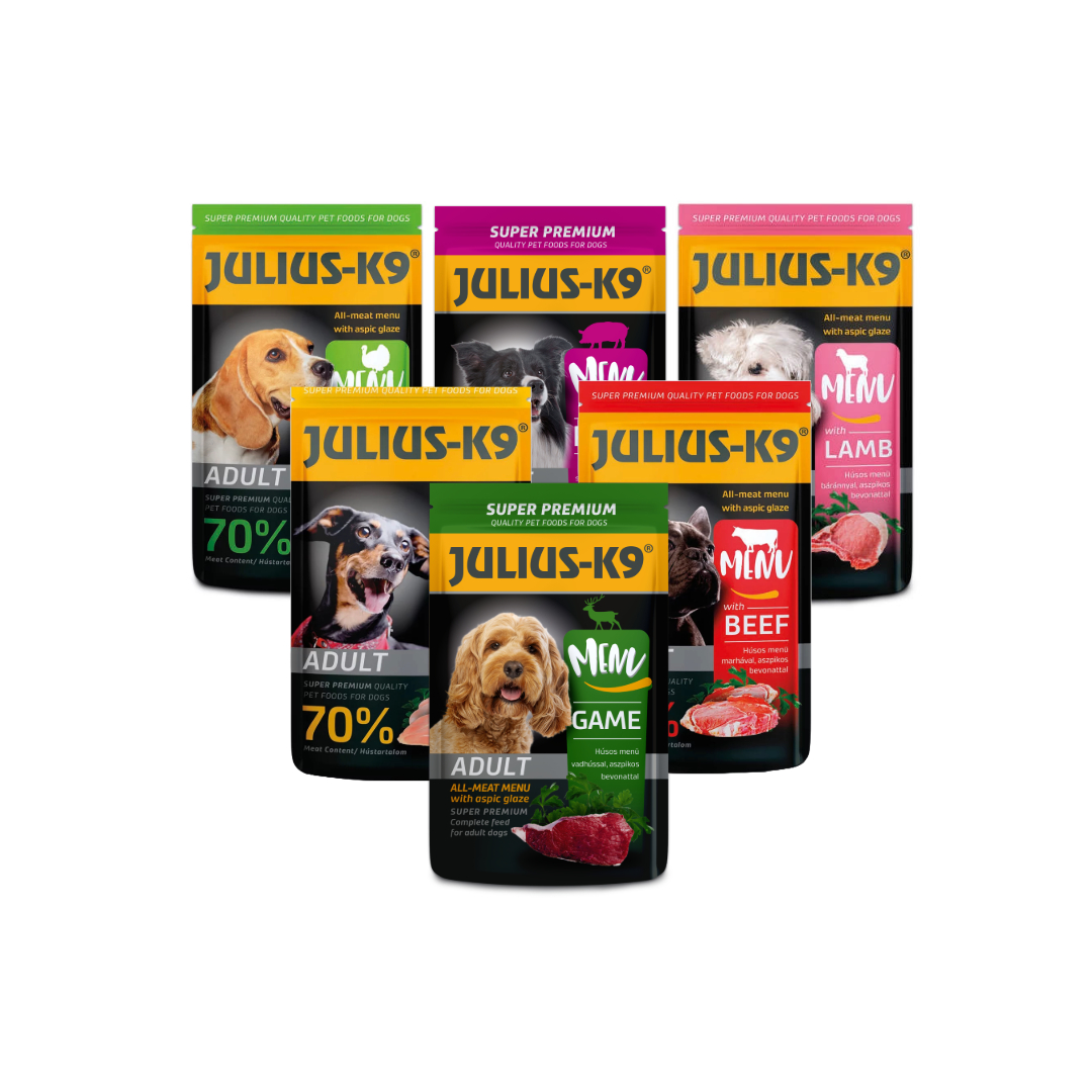 Geef jouw hond afwisseling en topkwaliteit met de Julius-K9 All-Meat Maaltijdzakjes Combo Box – de perfecte combinatie van gemak, variatie en voedingswaarde!