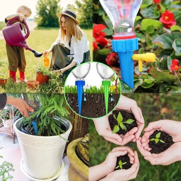 - Eenvoudig en handig: Er is geen gereedschap nodig voor de installatie, boor gewoon wat gaten in de bodem van de fles of knip de staart van de fles af om de lucht te laten stromen. Nauwkeurig watervolume, biedt verschillende hoeveelheden water voor verschillende planten en bloemen, elke plant is uniek.