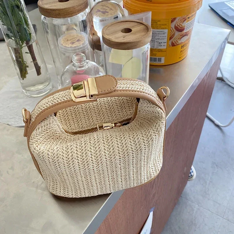 Gemaakt van stro, is deze tas niet alleen modieus maar ook milieuvriendelijk, wat aantrekkelijk is voor degenen die duurzaamheid belangrijk vinden in hun modekeuzes.