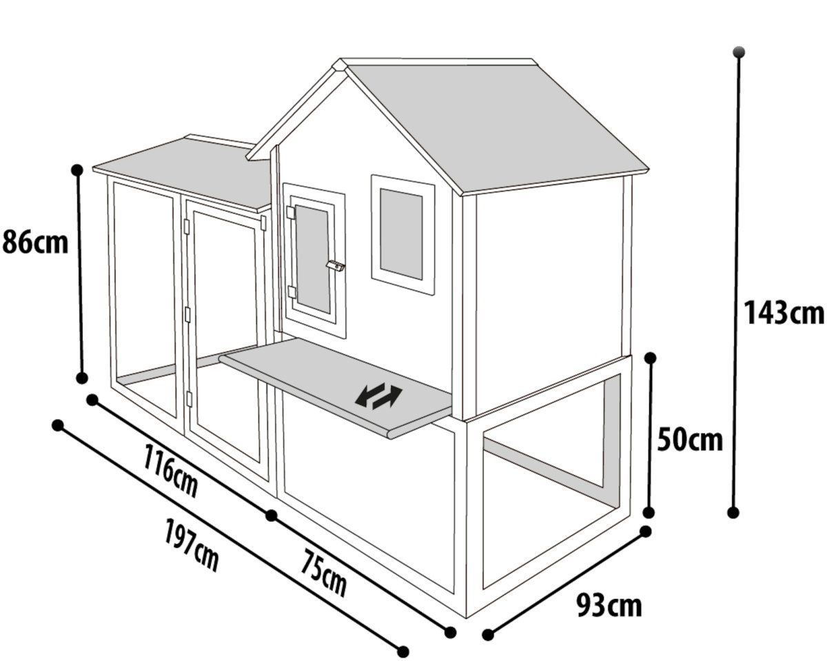 Dit kippenhok met ren is perfect voor jouw gevleugelde vrienden! Het heeft een nachthok, een ren en zelfs een loopplank. Makkelijk schoon te maken dankzij de uitneembare lade. Met ventilatie en een houten dak. En het krijtbord geeft een persoonlijke touch!