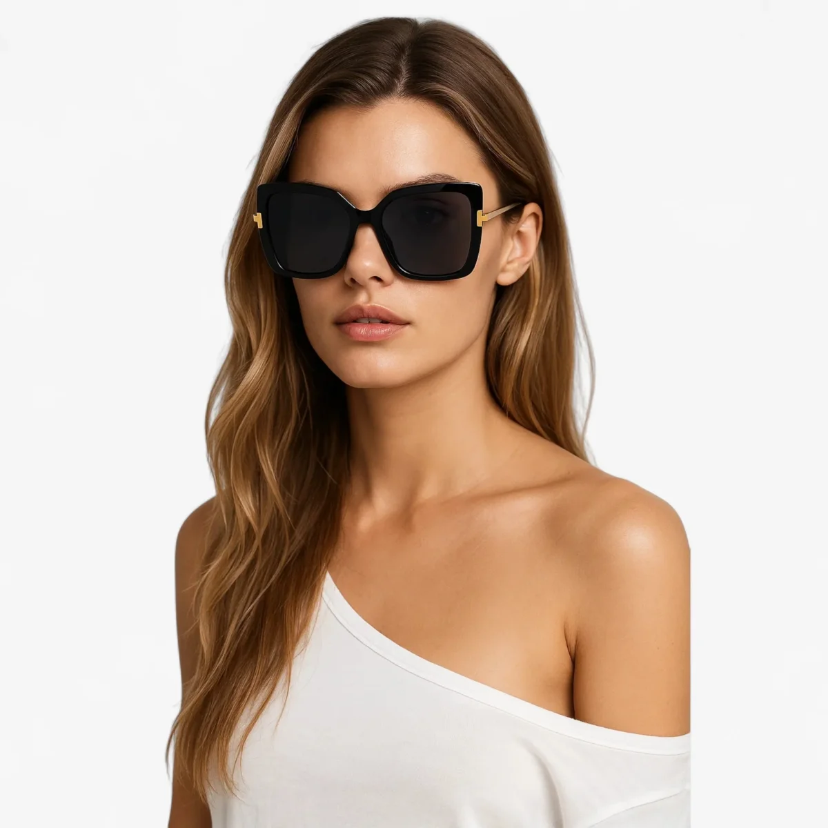 Laat de zon jouw stijl versterken met de Andrea zonnebril: een speelse en elegante cat-eye bril met een opvallend T-frame design. De oversized glazen en kleurrijke accenten geven elke outfit een expressieve touch – perfect voor wie durft op te vallen op festivals, citytrips of zonnige brunches.