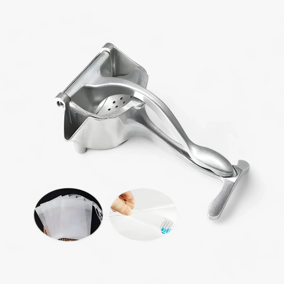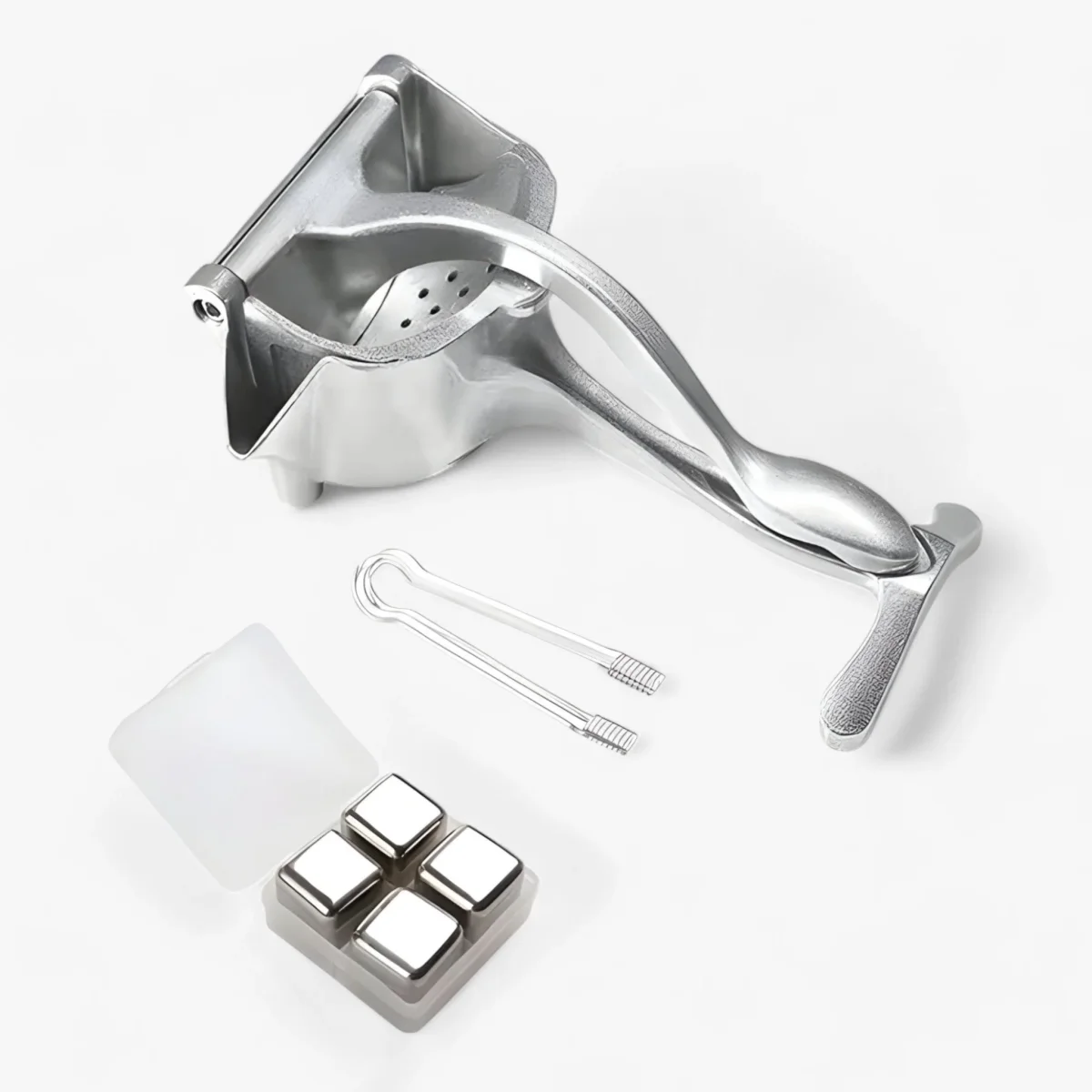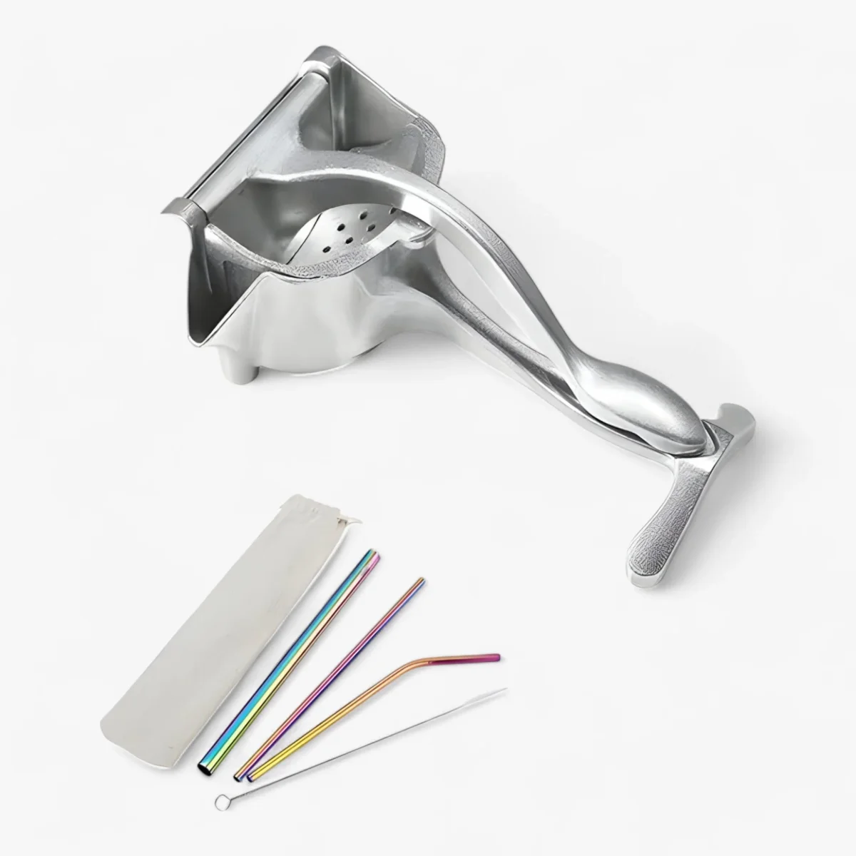 Ontdek het gemak van het persen van je favoriete vruchten met onze Juice Squeezer Set van aluminium. Transformeer elke vrucht in een verfrissende traktatie en geniet van versgeperste dranken thuis, zonder moeite.