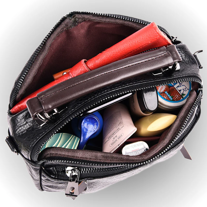 De leren buitenkant van de CompactBag™ past bij elke outfit. Hij heeft afneembare riemen waarmee u hem kunt dragen als handtas, schoudertas, boodschappentas of crossbodytas. Hij past zich aan uw behoeften en comfort aan en is bruikbaar op het werk, bij sociale bijeenkomsten, in het dagelijks leven of op reis.