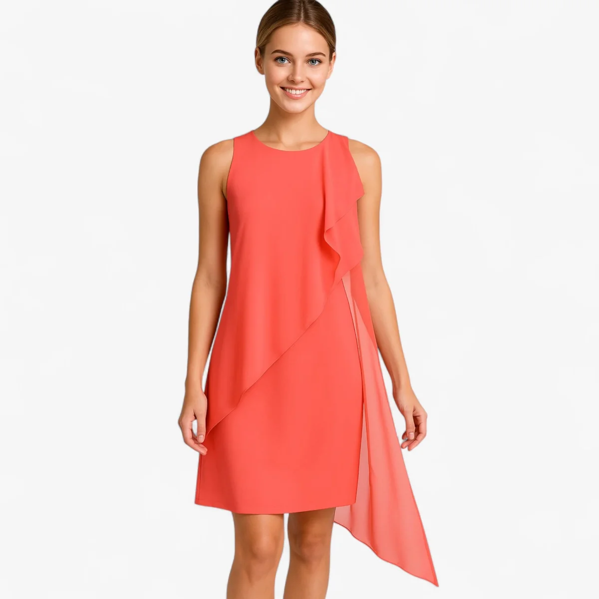 Ontdek onze elegante zomerjurk zonder mouwen, ontworpen voor optimaal comfort en stijl tijdens warme zomerdagen. Gemaakt van zacht chiffon, is deze jurk perfect voor elke gelegenheid, van een lunch aan het strand tot een avondje uit in de stad.