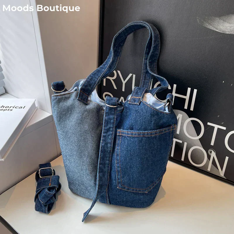 De Alani – Denim Patchwork Kruisbodytas heeft een uniek patchwork ontwerp gemaakt van denim materialen. Deze schoudertas is een casual maar stijlvol accessoire voor dagelijks gebruik.
