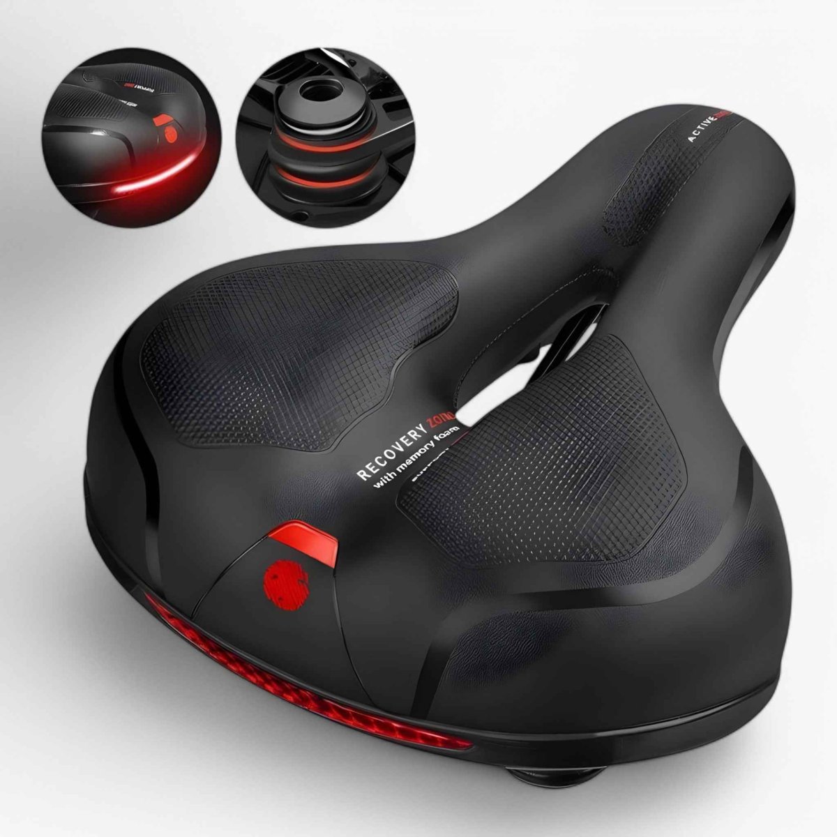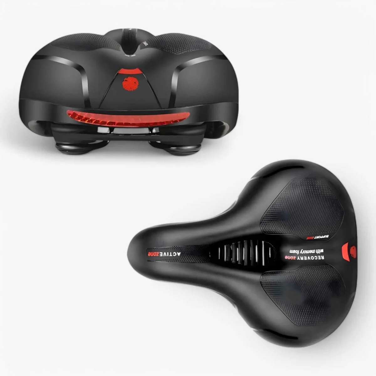 Dit zadel is ontworpen in samenwerking met ervaren sportwetenschappers om je maximaal comfort te bieden tijdens het fietsen. Het heeft een hightech gelvulling, heeft een schok dempend effect en houdt je koel tijdens het fietsen, zodat je urenlang kunt fietsen. De geïntegreerde reflector zorgt voor zichtbaarheid, zelfs in het donker.