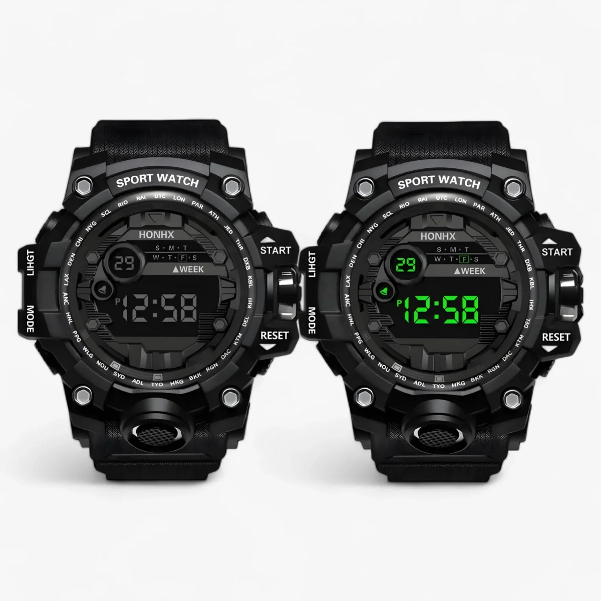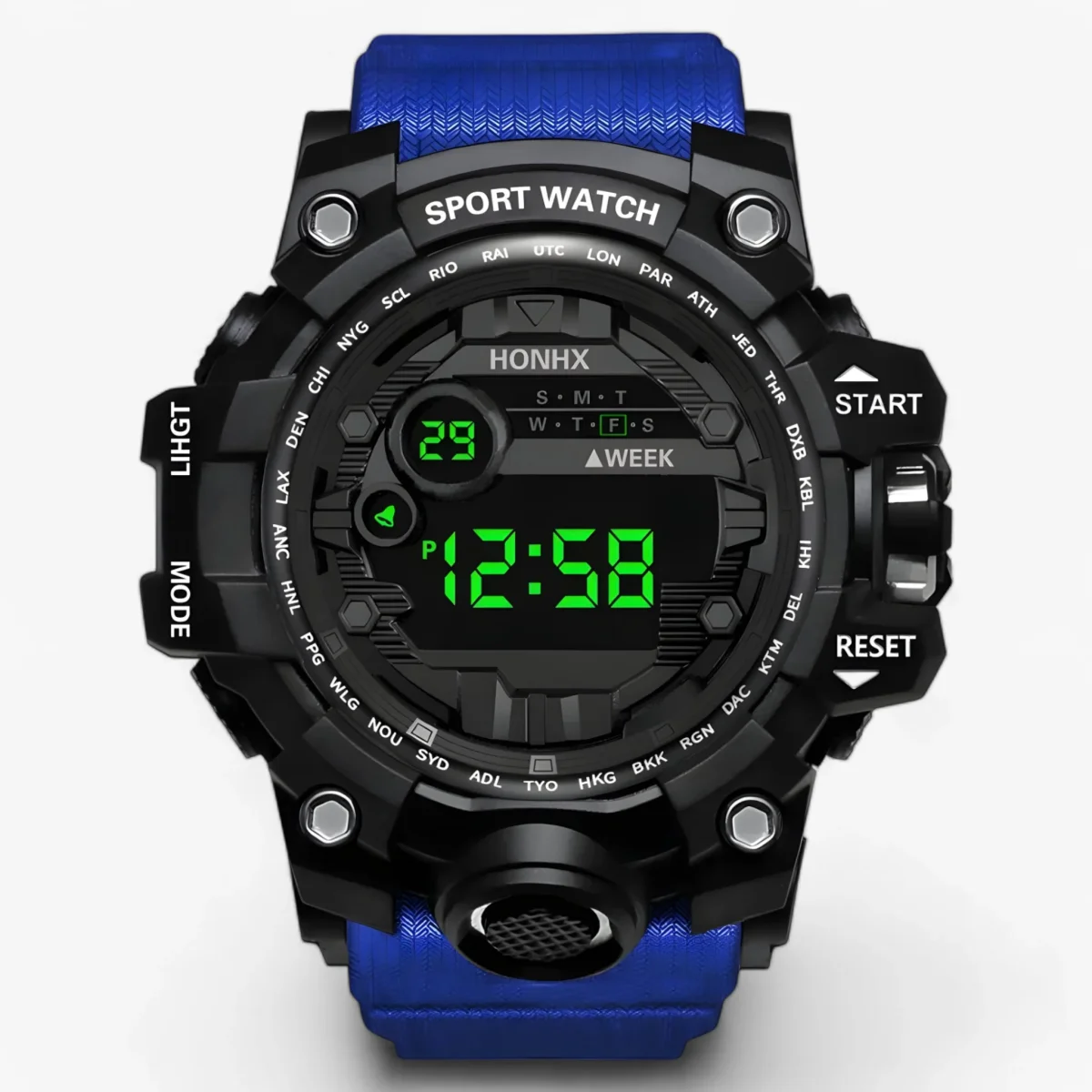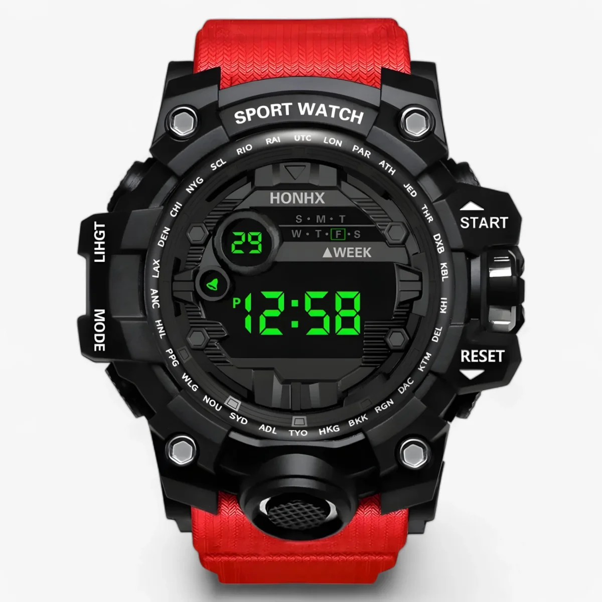 Met een grote, gemakkelijk afleesbare LED-display zorgt dit horloge ervoor dat je in één oogopslag de tijd of datum kunt checken. Het strakke, moderne design past perfect bij zowel sportieve als casual outfits.