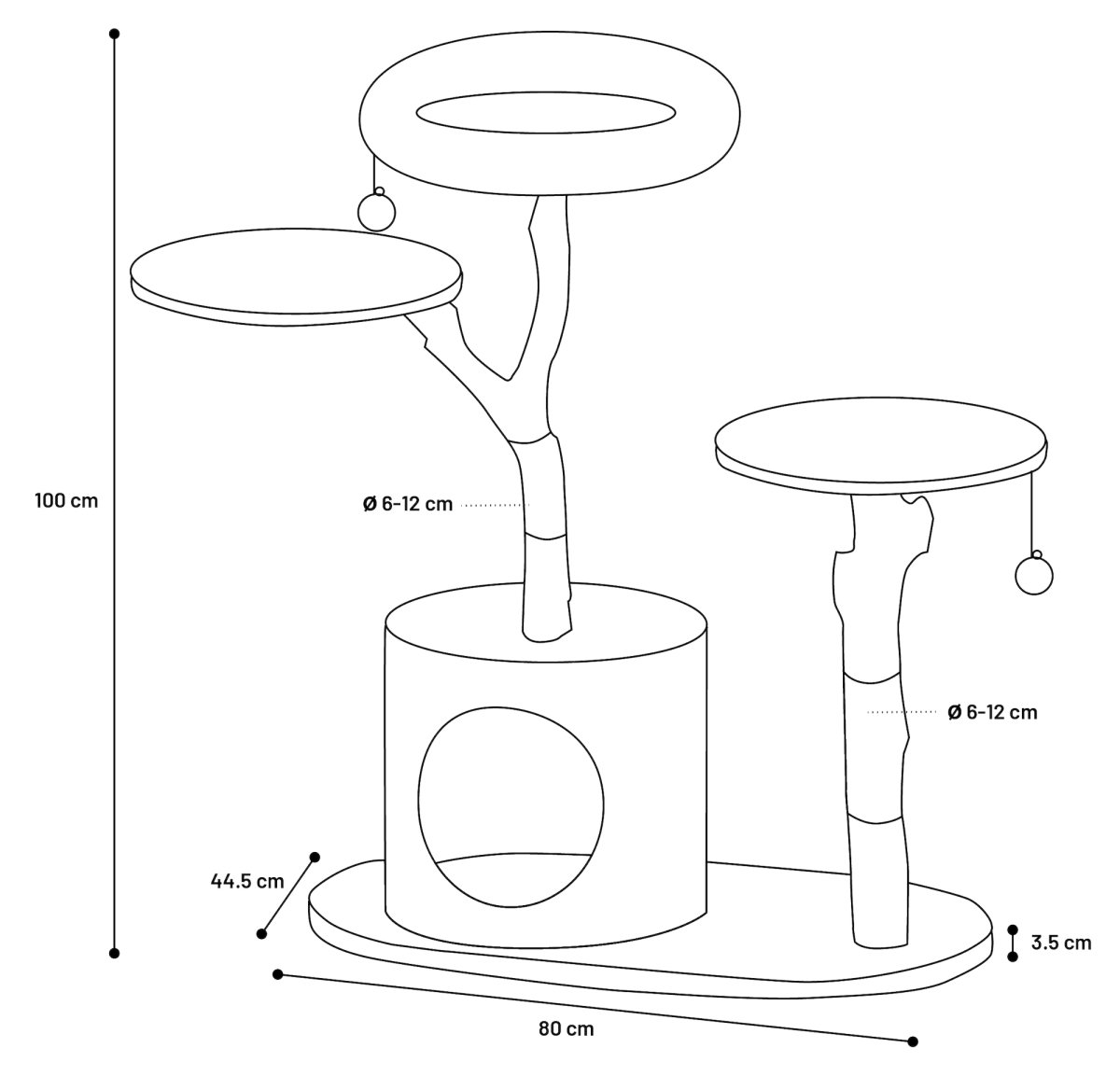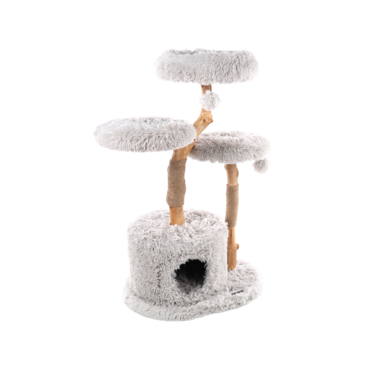 Geef jouw kat de ultieme verwennerij met de prachtige krabpaal Hina! Deze houten krabpaal is bedekt met super zacht pluche en heeft diverse diameter palen met jute touw voor het aanscherpen van de nageltjes. Jouw kat kan heerlijk dutten op de gewatteerde ligplaatsen en mand bovenop de paal of zich terugtrekken in het schuilhuisje. En als kers op de taart zijn er ook nog twee speelballetjes voor extra speelplezier! Een echte eye-CATcher voor in de woonkamer.