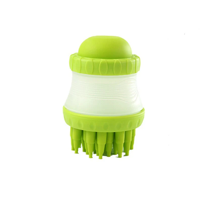 Vul het compartiment door het onderste deel van de borstel te ontgrendelen en laat de vloeistof ontsnappen door op het knijpgedeelte aan de bovenkant van de borstel te drukken terwijl je je hond wast. De shampoo zal op natuurlijke wijze naar de dispenser stromen.
