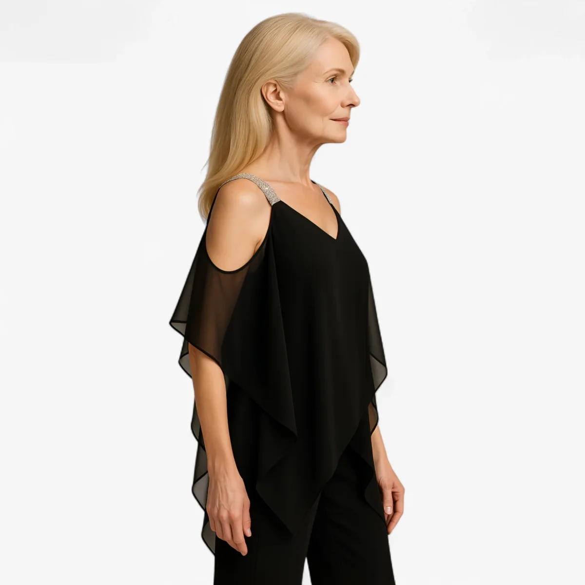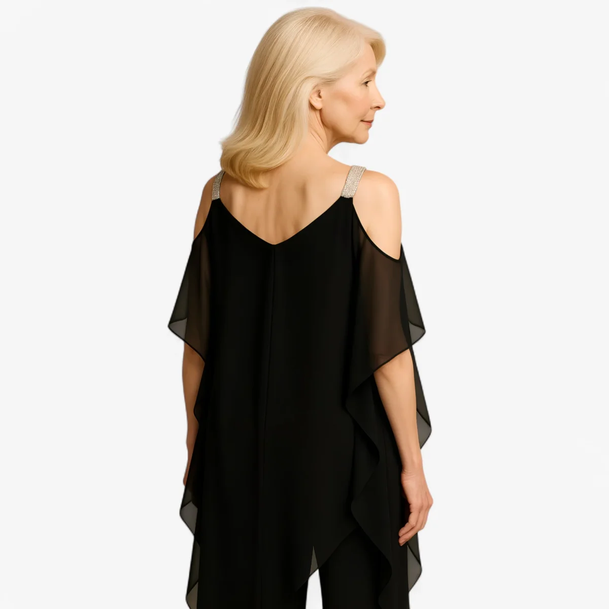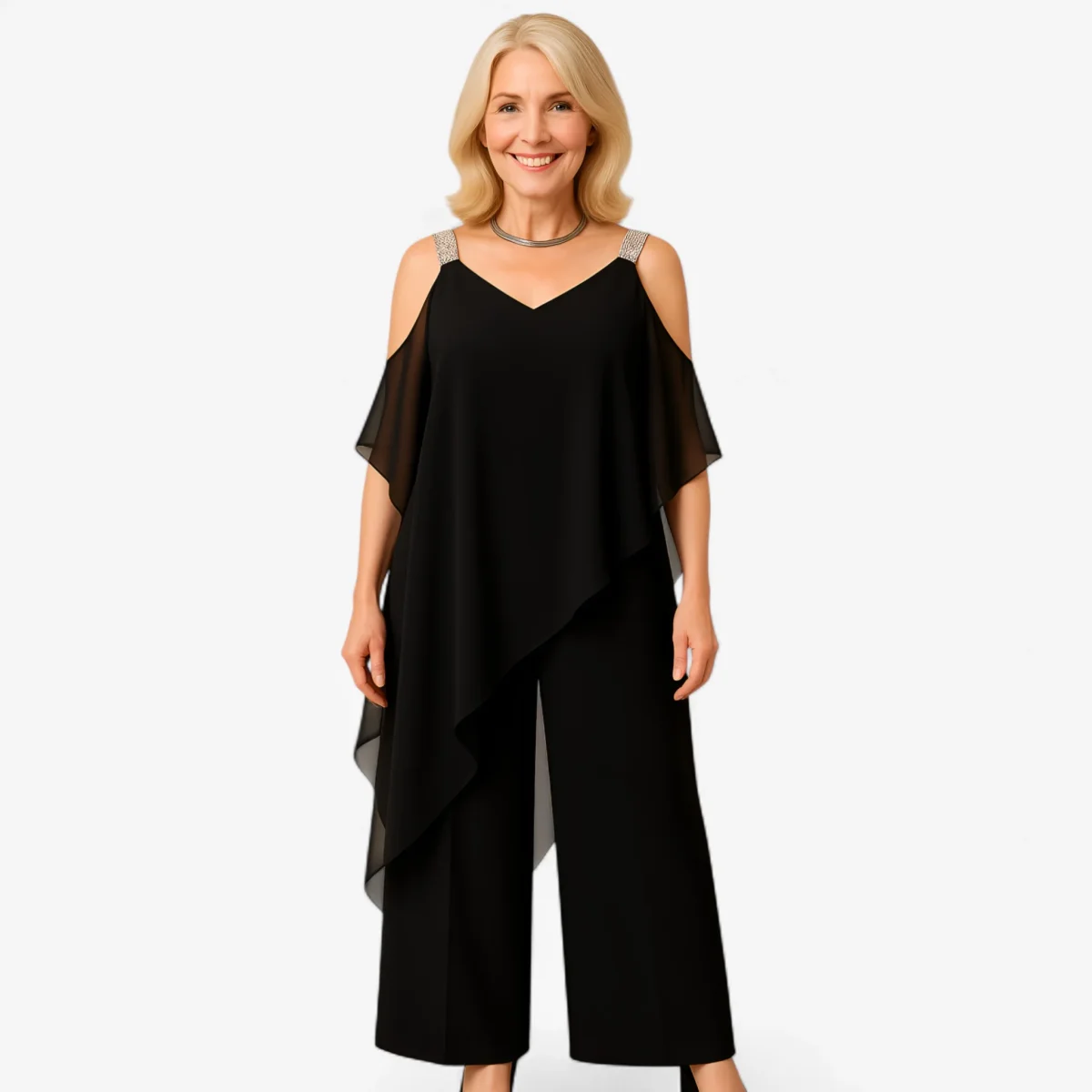 Ontdek de perfecte elegante jumpsuit, ideaal voor elke speciale gelegenheid. Met een uniek asymmetrisch ontwerp en een delicate voile bedekking, biedt deze jumpsuit een verfijnde en modieuze uitstraling.