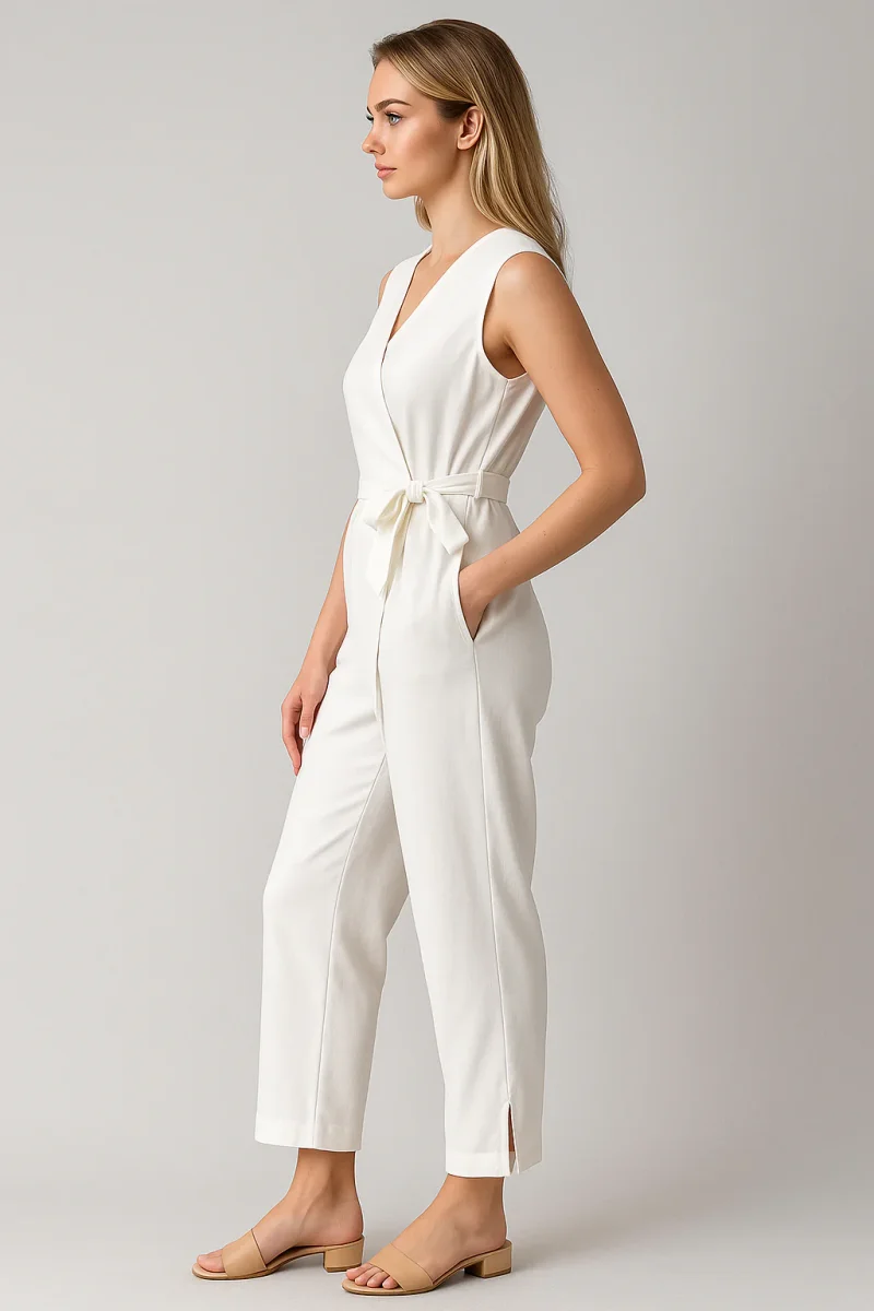 Ontdek de perfecte combinatie van stijl en comfort met deze elegante jumpsuit zonder mouwen. Ontworpen om te passen bij elk moment van je dag, is deze jumpsuit ideaal om je zelfverzekerd en vrouwelijk te voelen, of je nu een speciale gelegenheid hebt of dagelijkse activiteiten onderneemt.