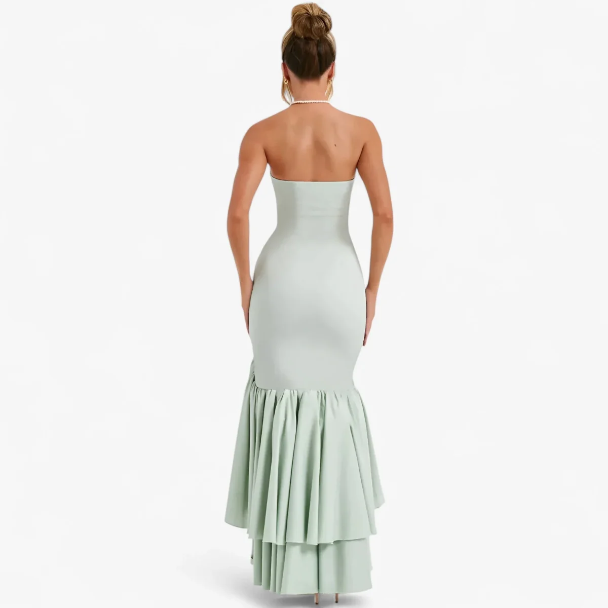De mouwloze jurk Sofia met ruches biedt een perfecte combinatie van stijl en elegantie. Deze jurk is ontworpen om je figuur te flatteren en je een zelfverzekerd gevoel te geven, waardoor je opvalt in elke ruimte.