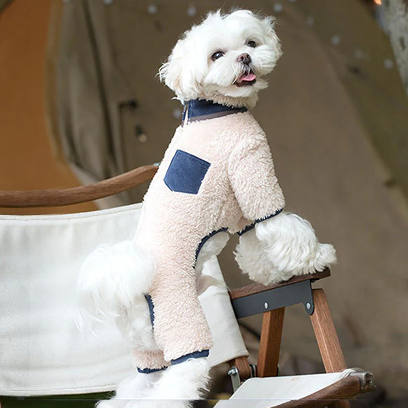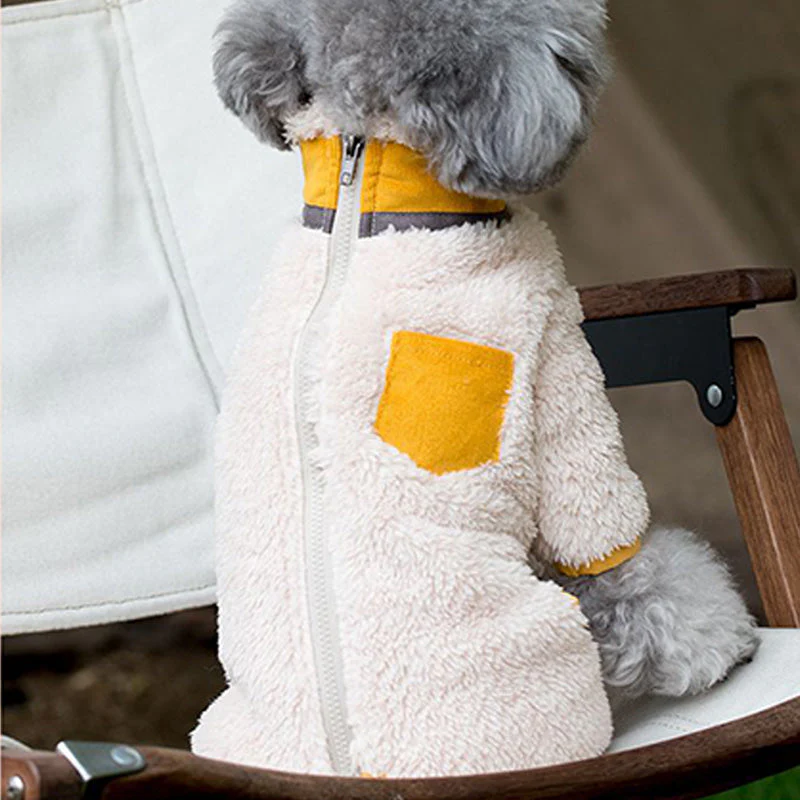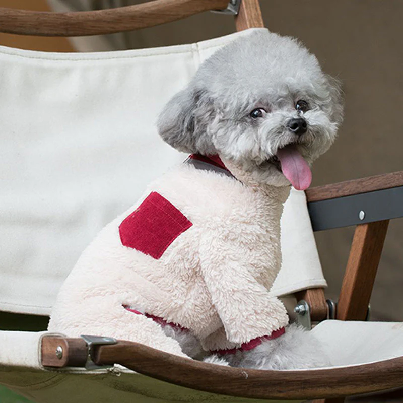 🧵 Exquise Details: Geniet van de nauwgezette ontworpen contrastbies die perfect aansluit bij de gezellige ribfluwelen kraag en zakken, waardoor het een echt chique canine modestatement vormt.
