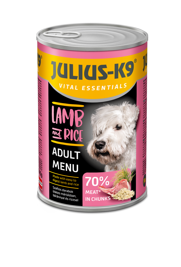 Julius K9 Lam & rijst is een sappig natvoer voor volwassen honden.