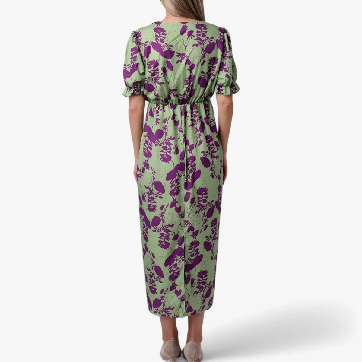 Ontdek de perfecte combinatie van elegantie en comfort met deze bloemenjurk. Het ontwerp benadrukt uw vrouwelijke vormen en biedt een frisse uitstraling voor elke gelegenheid.