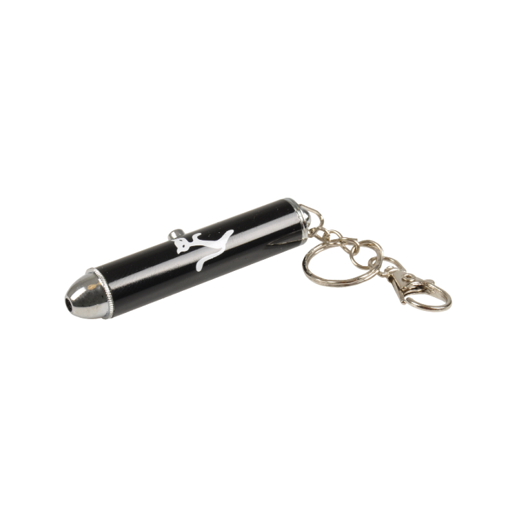 Een interactief laserspeeltje uit ABS kunststof. De laser pointer is zichtbaar tot 3 meter en afgewerkt met een sleutelhanger. Het speeltje is inclusief 3 LR44 batterijen.