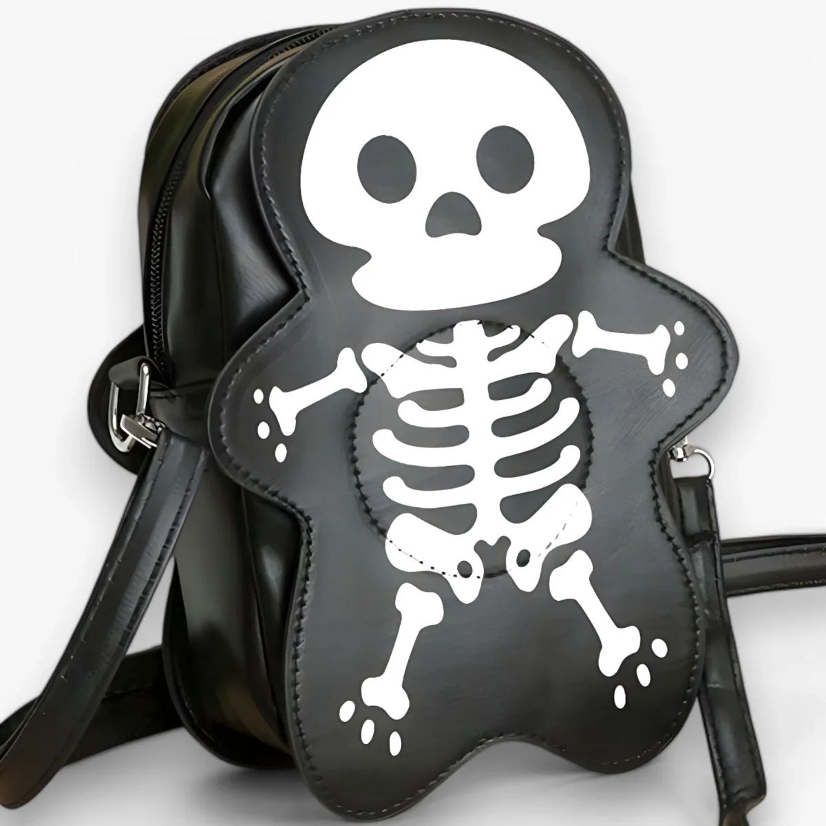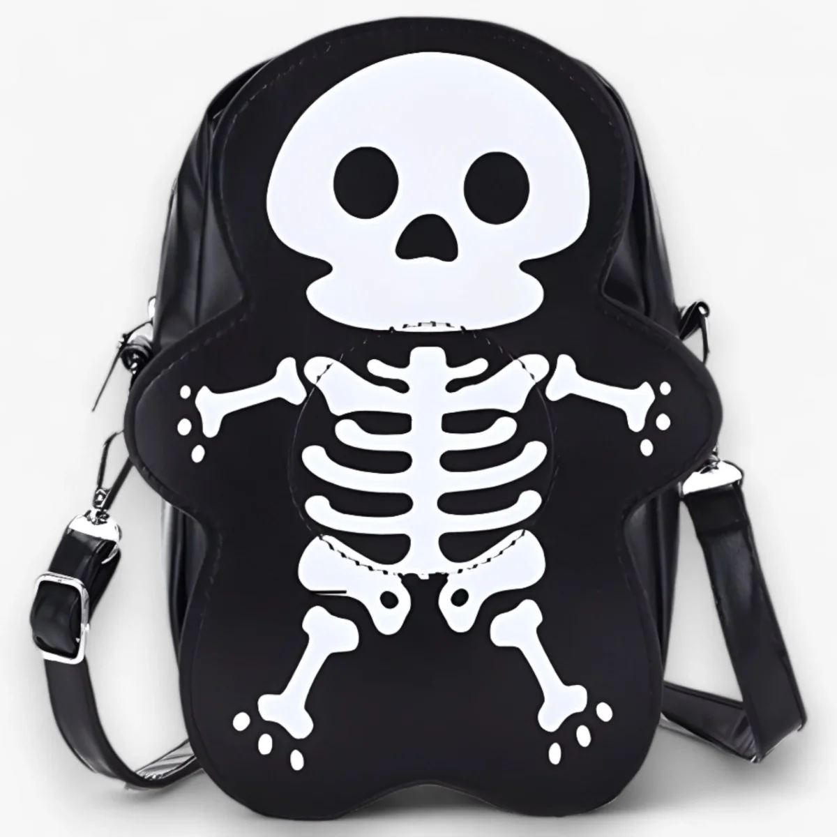 Ondanks het compacte formaat biedt de Bones tas voldoende ruimte voor je essentials zoals je telefoon, portemonnee en sleutels. Het is ontworpen om uw bezittingen veilig en georganiseerd te houden terwijl u geniet van uw Halloween-vieringen of dagelijkse uitstapjes.