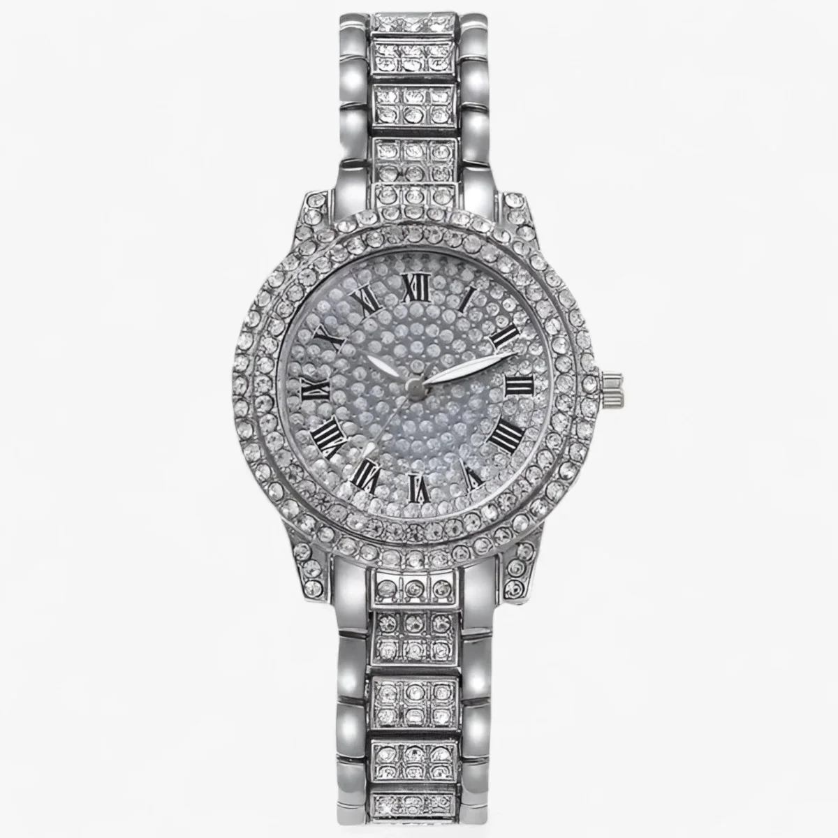 Het Dameshorloge met Volledige Diamanten is een luxe merk quartz horloge, ontworpen voor dames die punk elegantie en mode waarderen. Gemaakt met zirkonia’s en staal, combineert dit polshorloge duurzaamheid met sprankelende stijl.