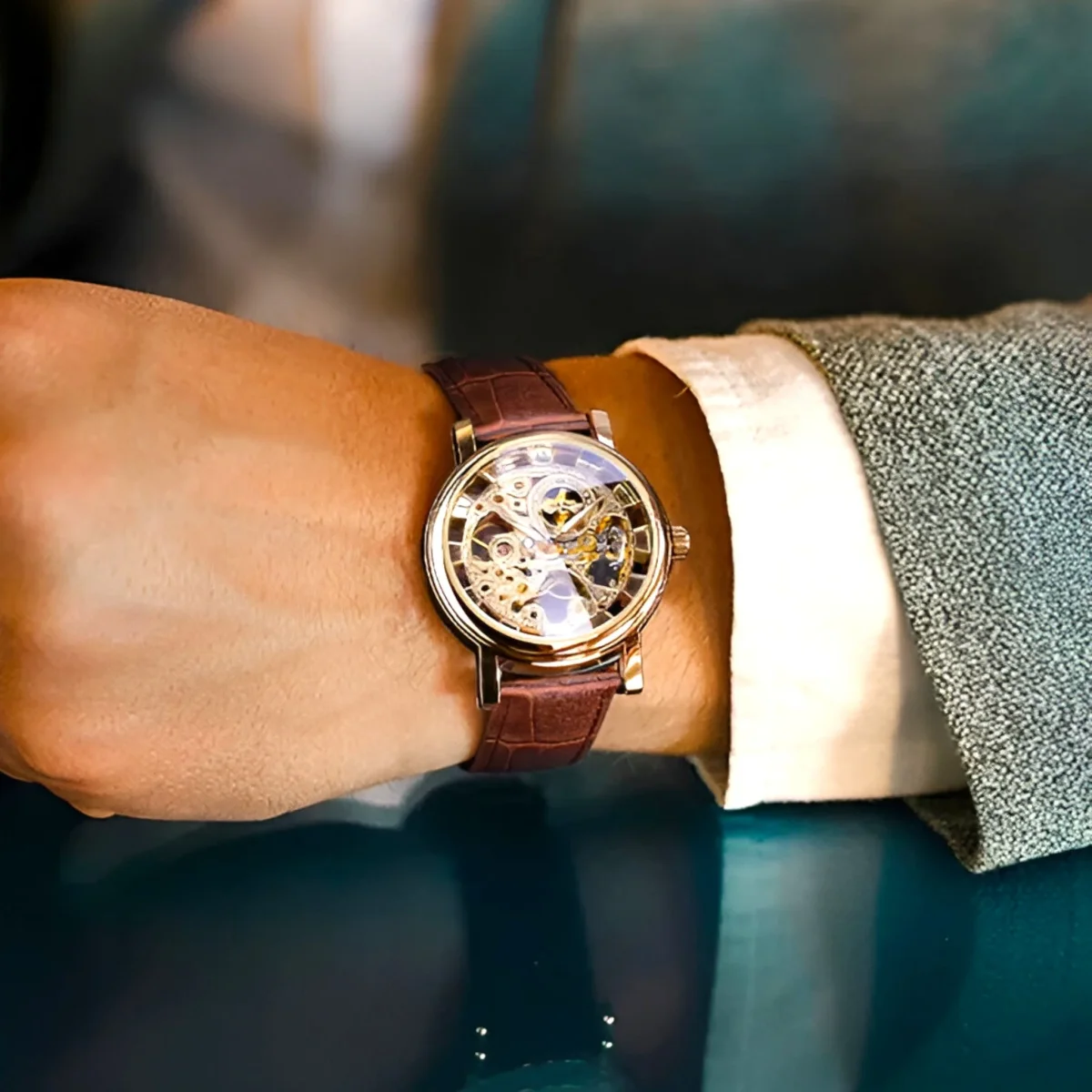 Transparant kastontwerp: Benadrukt het skeletmechanische ontwerp voor een verfijnde uitstraling.