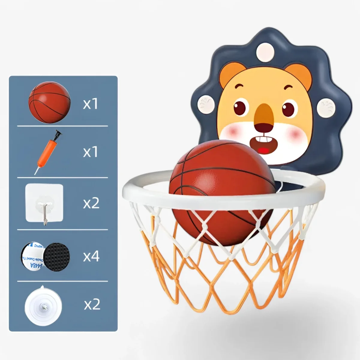 Het MiniHoops Basketbal Speelgoed wordt geleverd met alles wat je nodig hebt: een opvouwbare hoepel, een basketbal achterbord, een mini basketball, een net, een mini hand luchtpomp, zuignappen, lijmhaakjes en schokbestendige pads. Het kan eenvoudig worden bevestigd op elke gladde ondergrond zoals muren, deuren of glas. Pas de hoogte aan naar jouw perfecte niveau voor schieten en dunk-oefening!