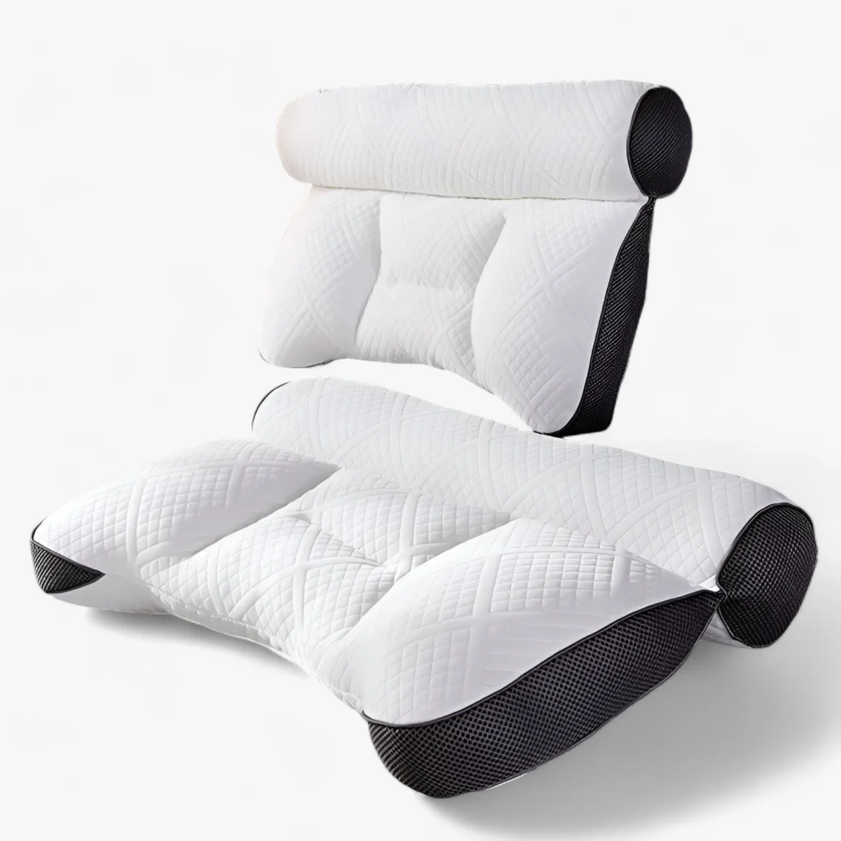 Het orthopedische kussen is ontwikkeld om een herstellende, pijnvrije nachtrust te waarborgen. De unieke vorm helpt bij het verlichten van nekpijn en ondersteunt een goede houding.
