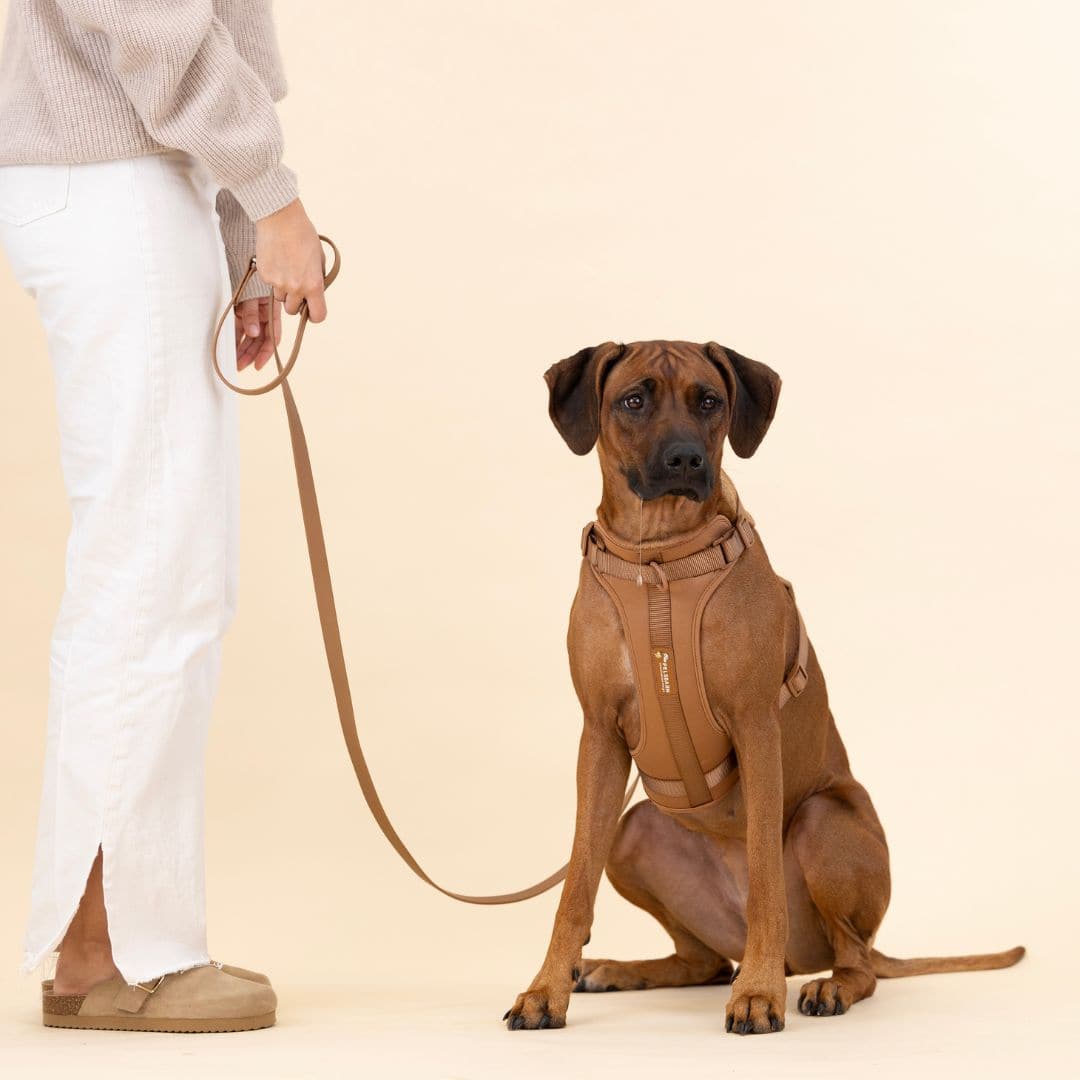 In deze warme, aardse kleur is het harnas een subtiele eyecatcher die past bij elk type vacht. Combineer het met een bijpassende riem en je bent klaar voor elke wandeling, in stijl.