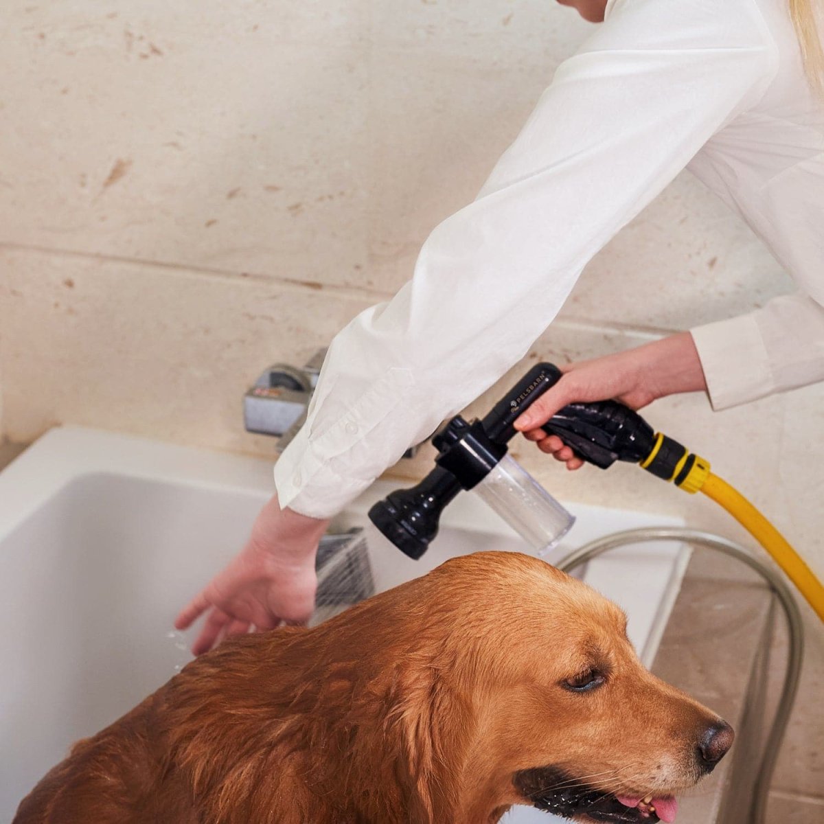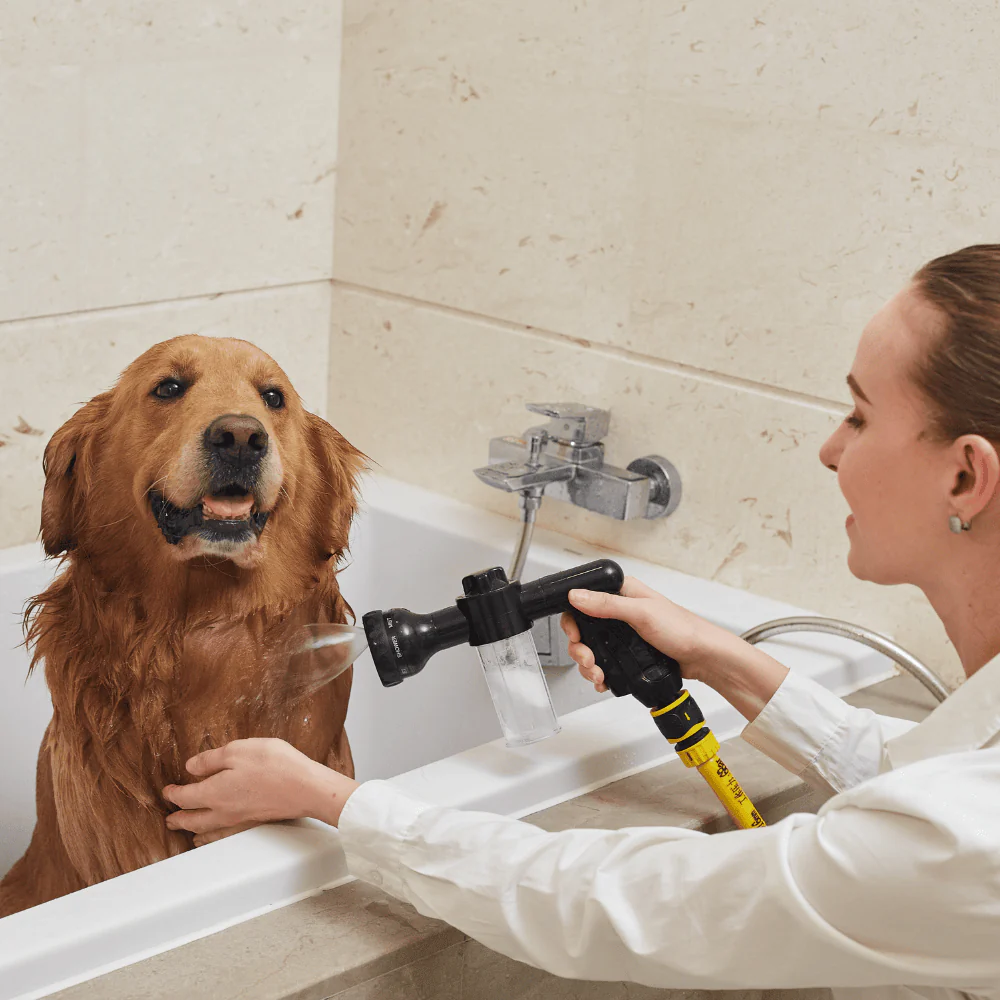 De snelle, stressvrije manier om elke hond te wassen! Gewoon aansluiten, schuim toevoegen en wassen maar.
