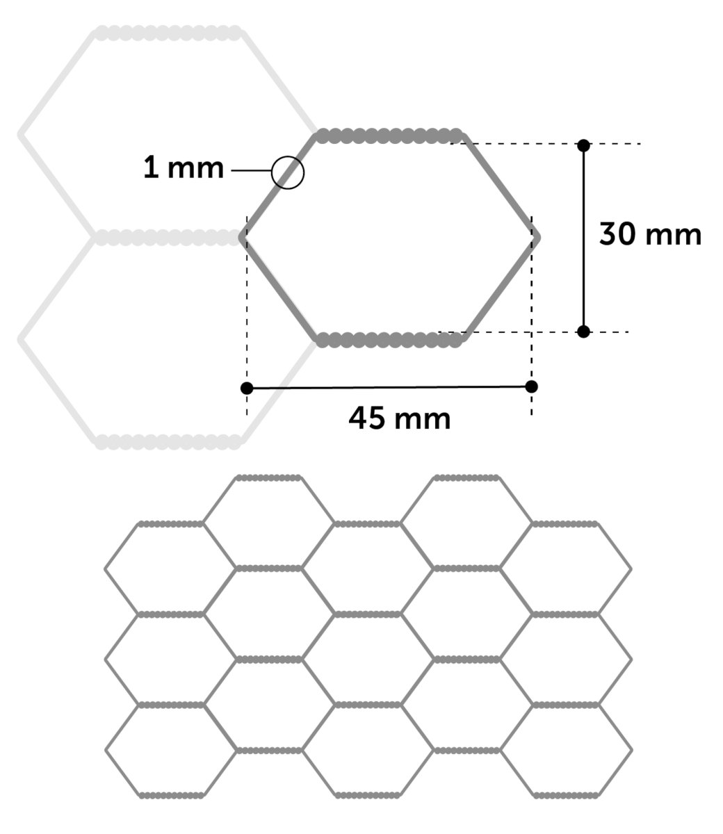 - De grootte van de mazen is 4,5 x 3 cm