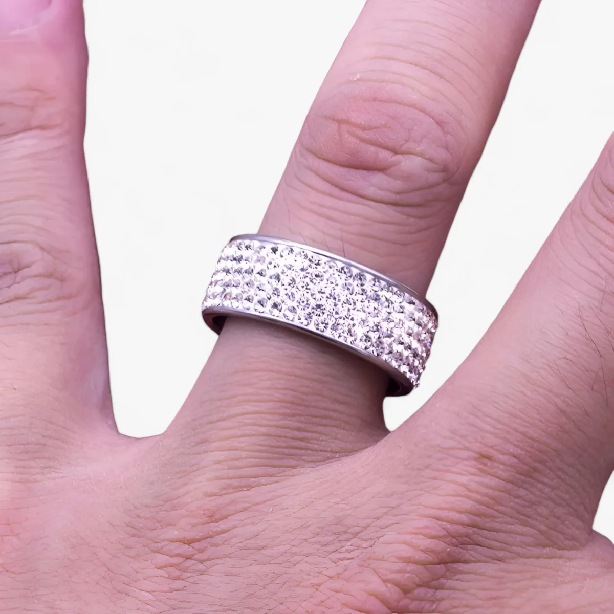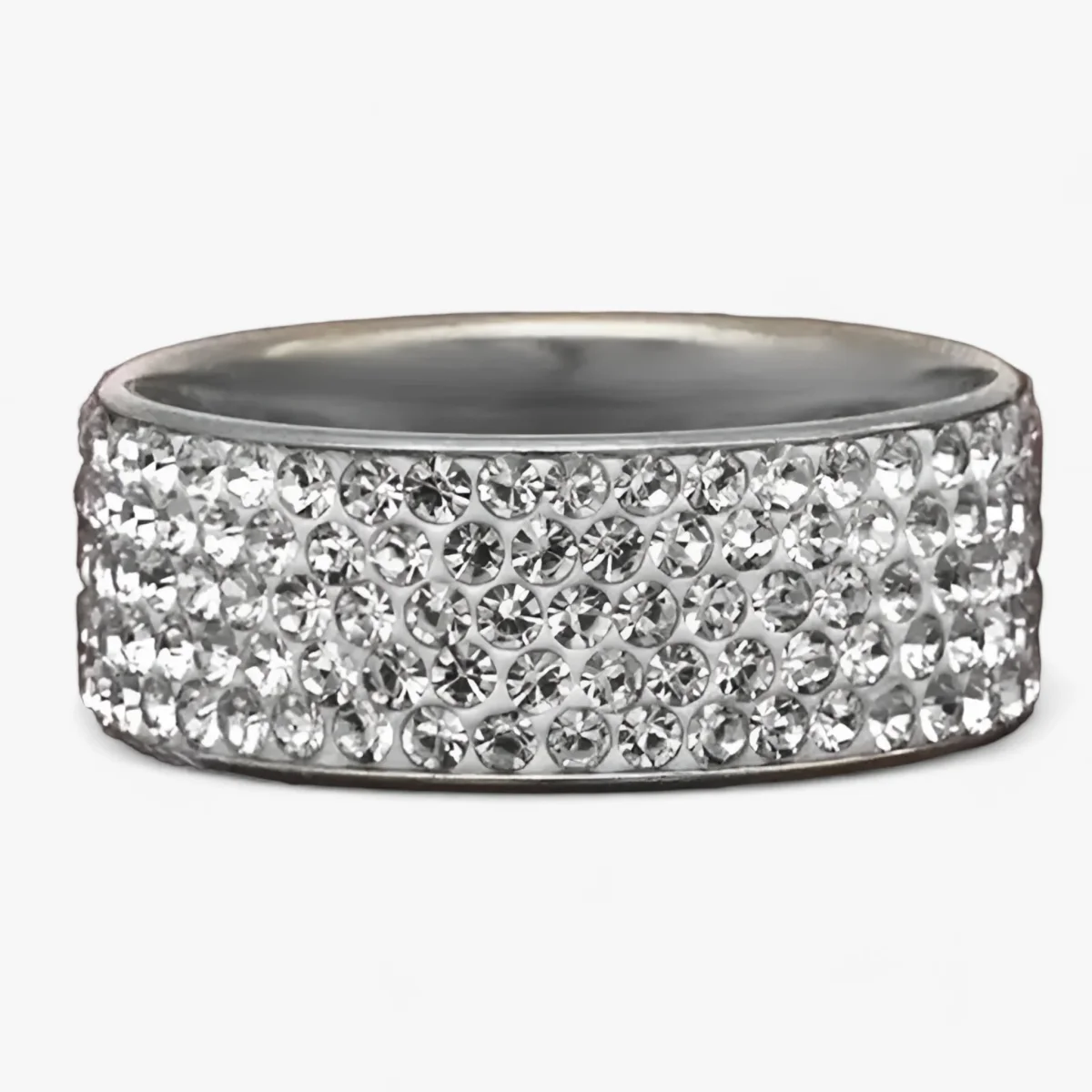 Maak kennis met de Roestvrij Stalen Kristallen Ring, een elegant en tijdloos stuk ontworpen voor vrouwen. Deze 8mm trouwring heeft meerdere rijen sprankelende kristallen die in duurzaam roestvrij staal zijn gezet, waardoor luxe en duurzaamheid worden gecombineerd. Perfect als trouwring of als statementstuk, deze ring voegt een vleugje verfijning en glans toe aan elke gelegenheid.