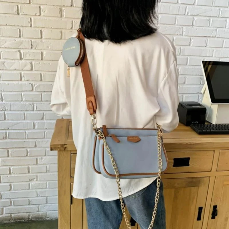 Verfijn uw stijl met de onze Isabella – Chique tweekleurige schoudertas met kettingriem Deze tas heeft een veelzijdig ontwerp met een luxe gouden kettingriem en een duurzame, verstelbare canvas schouderriem. Hun compacte maar ruime interieur maakt ze ideaal voor het meenemen van je dagelijkse benodigdheden en het toevoegen van een elegant tintje aan elke outfit.