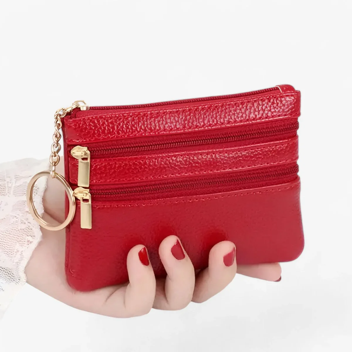 Drie vakken met rits: Handige opbergruimte voor pasjes, geld en munten.