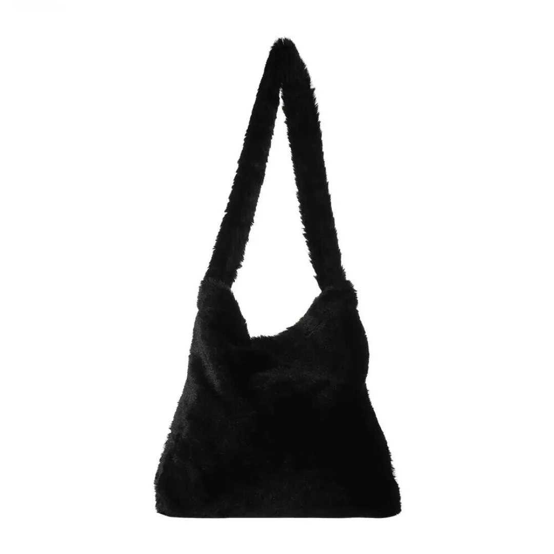 Een zachte pluche schoudertas met opvallende dierenprint. De fluffy textuur en losse snit maken deze tas een eyecatcher voor elk seizoen.
