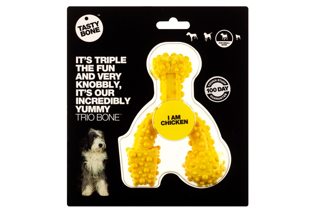 De TastyBone Trio Bone is speciaal ontworpen voor honden die intensief kauwen. Gemaakt van 100% zuiver nylon en doordrenkt met smaak tot in de kern, biedt dit bot langdurig kauwplezier. De unieke driepootvorm maakt het gemakkelijk voor honden om het bot vast te houden en erop te kauwen, wat vooral handig is voor kortsnuitige rassen.