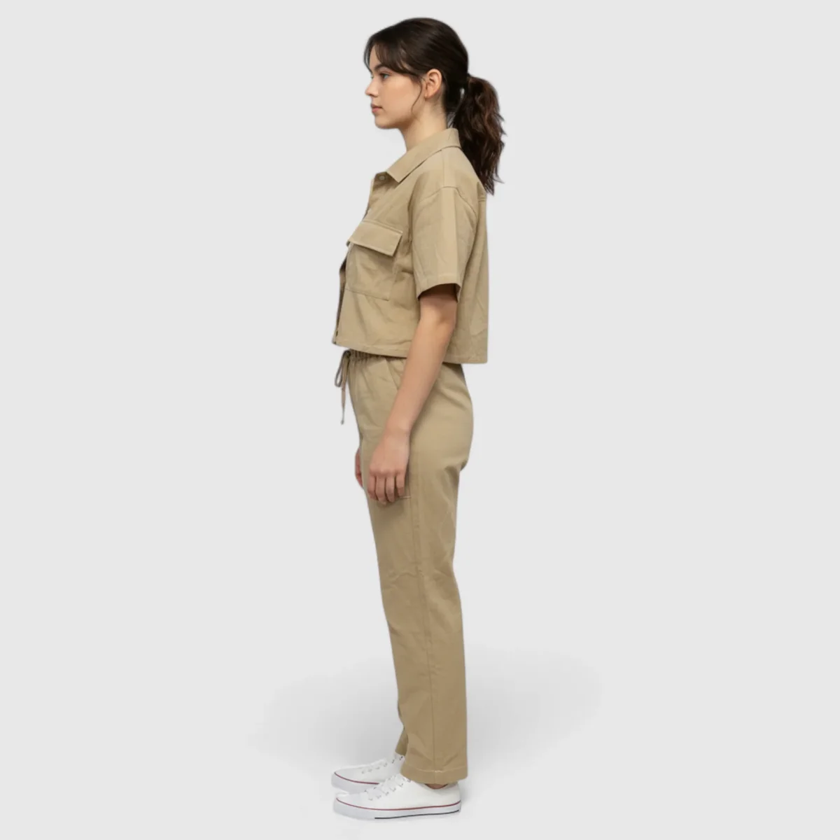 Ontdek onze elegante zomeroutfit, ontworpen voor vrouwen die stijl en comfort willen combineren. Deze hoogwaardige polyesterset is perfect voor elke gelegenheid, of u nu een casual dagje heeft of liever een meer verfijnde look heeft.