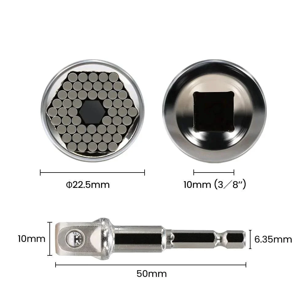 Diverse mogelijkheden – Profiteer van het brede scala applicaties en pas hem perfect aan op je boormachine, ratel driver of steeksleutel. Het is alles wat je nodig hebt voor het vastnemen van elke moer, bout of schroef. Bevestig en grijp alles vast met de Universele Tool sleutel.