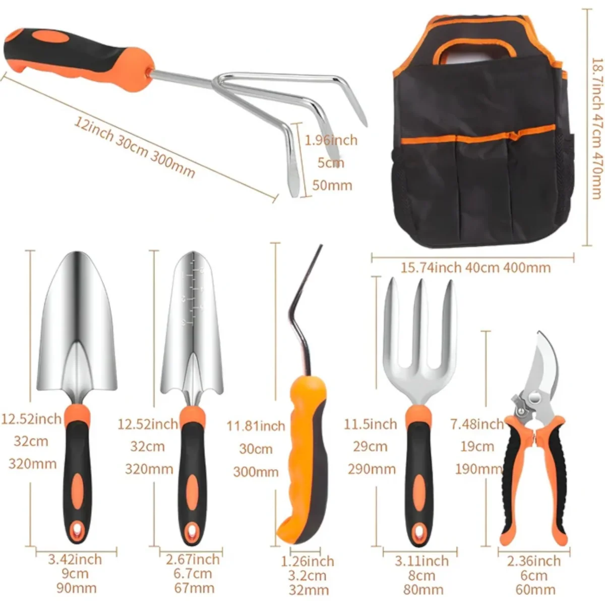 De set wordt geleverd met een handige opbergtas, waardoor je gereedschap georganiseerd en altijd binnen handbereik blijft – voor extra efficiëntie in de tuin.